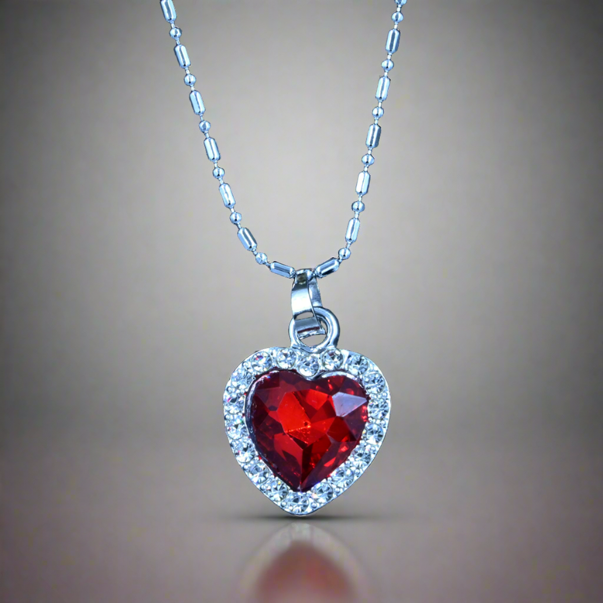 Introducing Anisa Heart-Shaped Pendant, featuring a vibrant red stone at its center, surrounded by small sparkling silver gems that add a touch of elegance. These heart pendants comes with a matching silver chain, ensuring it's ready to wear right away. Perfect for adding a dash of charm and sophistication to any outfit.